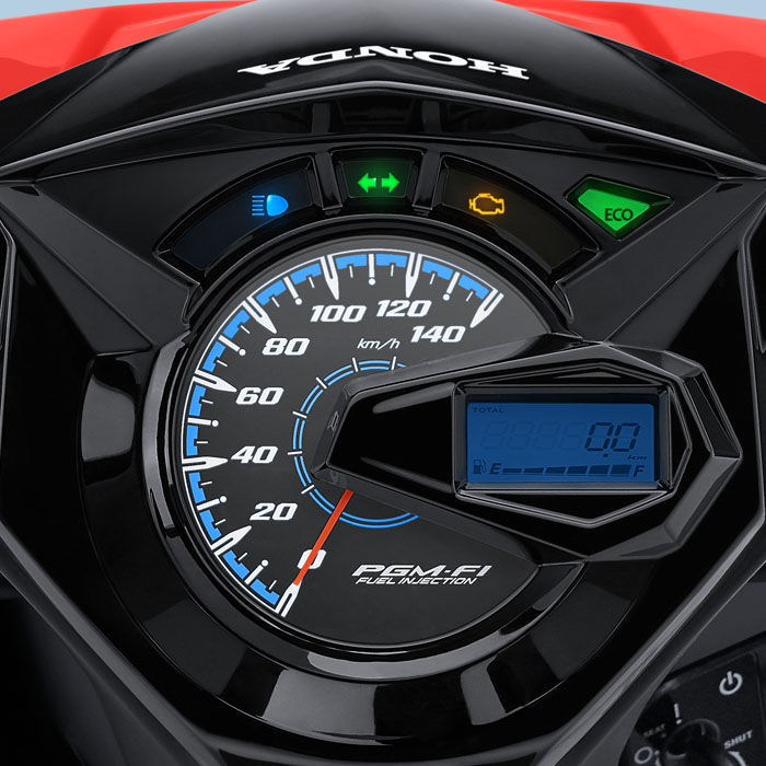 Semakin stylish dengan panel meter yang canggih dilengkapi lampu indikator ECO untuk kemudahan informasi berkendara.